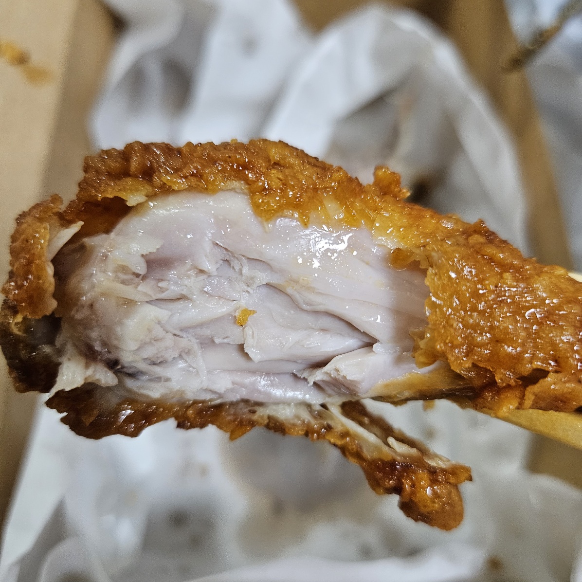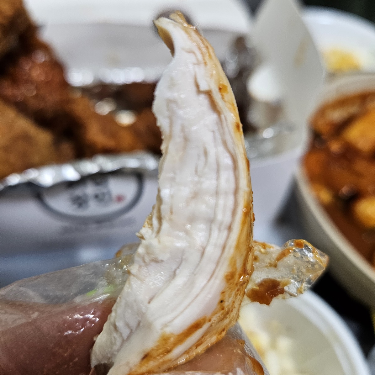 닭다리부터 한입 먹어봤는데요.