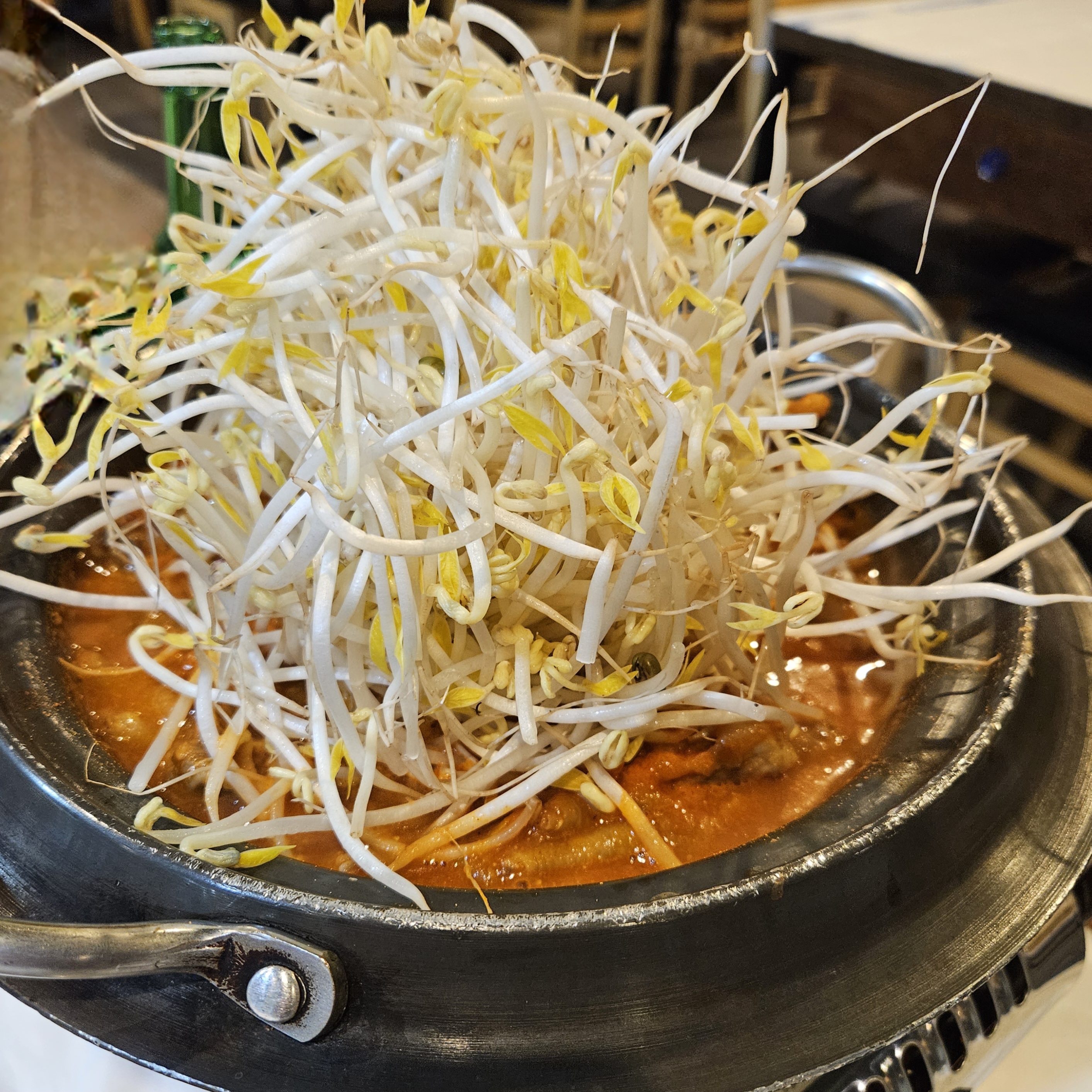숙주와 함께 자리에서 다시 한번 팔팔 끓여주고요. 맛을 보니 일단 국물 맛이 너무 짜요. 숙주가 들어가도 짠맛이 너무 강해서 국물은 많이 먹을 수 없었고요. 국물 안에 빠진 닭발은 양념맛이 안 베서 약간 냄새가 나더라고요. 방송도 많이 나오고 리뷰도 많아서 맛집일 줄 알았는데 대실망하고 나왔네요. 이상 솔직리뷰 마칩니다.