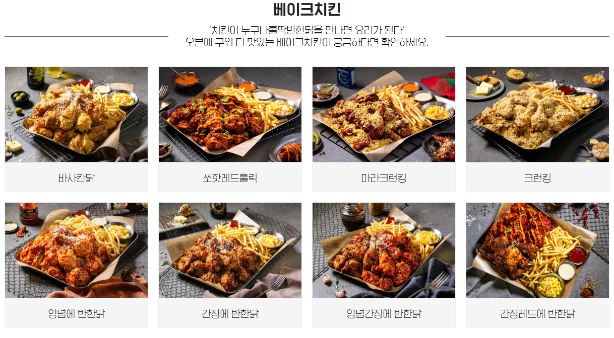 누구나 홀딱 반한닭의 베이크 치킨 메뉴들입니다.