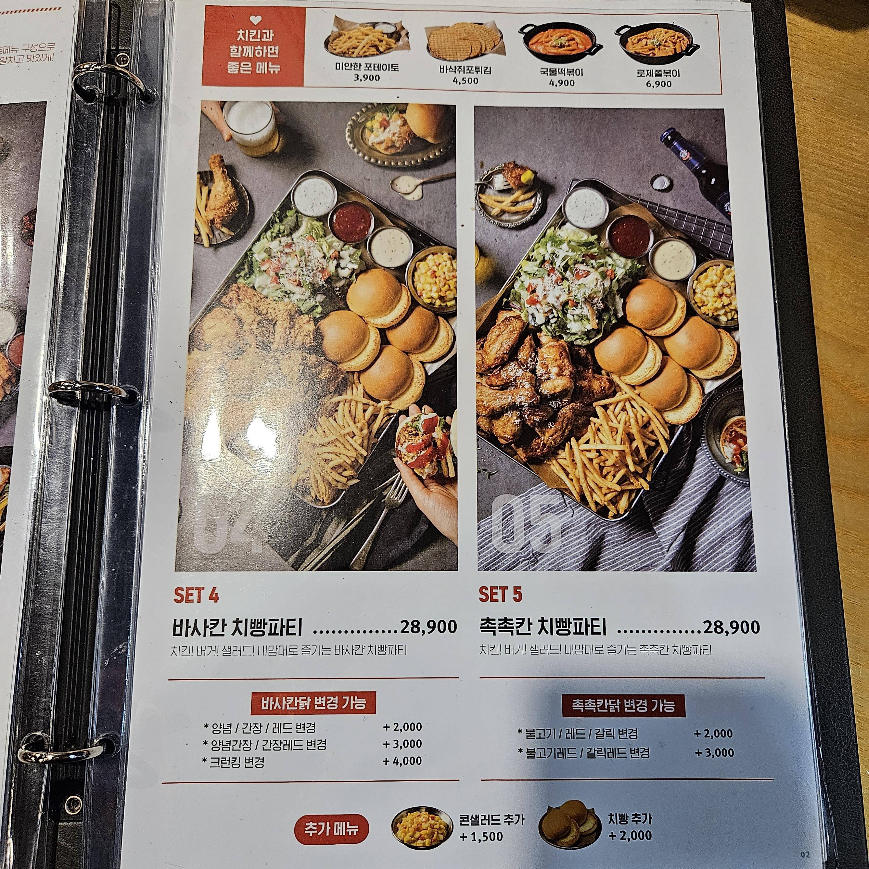 세트메뉴로 함께 할 수 있는 쫄뱅이나, 치빵파티