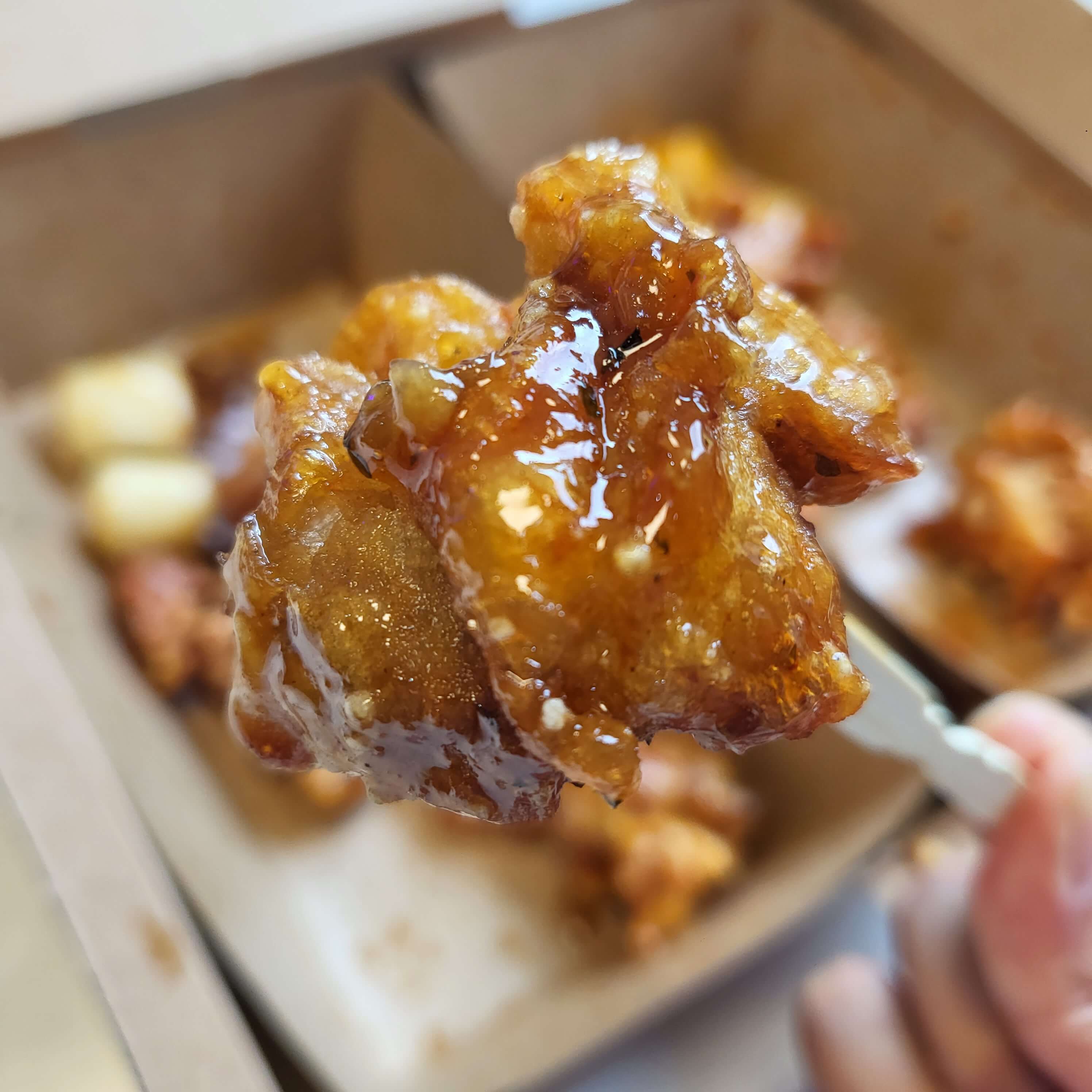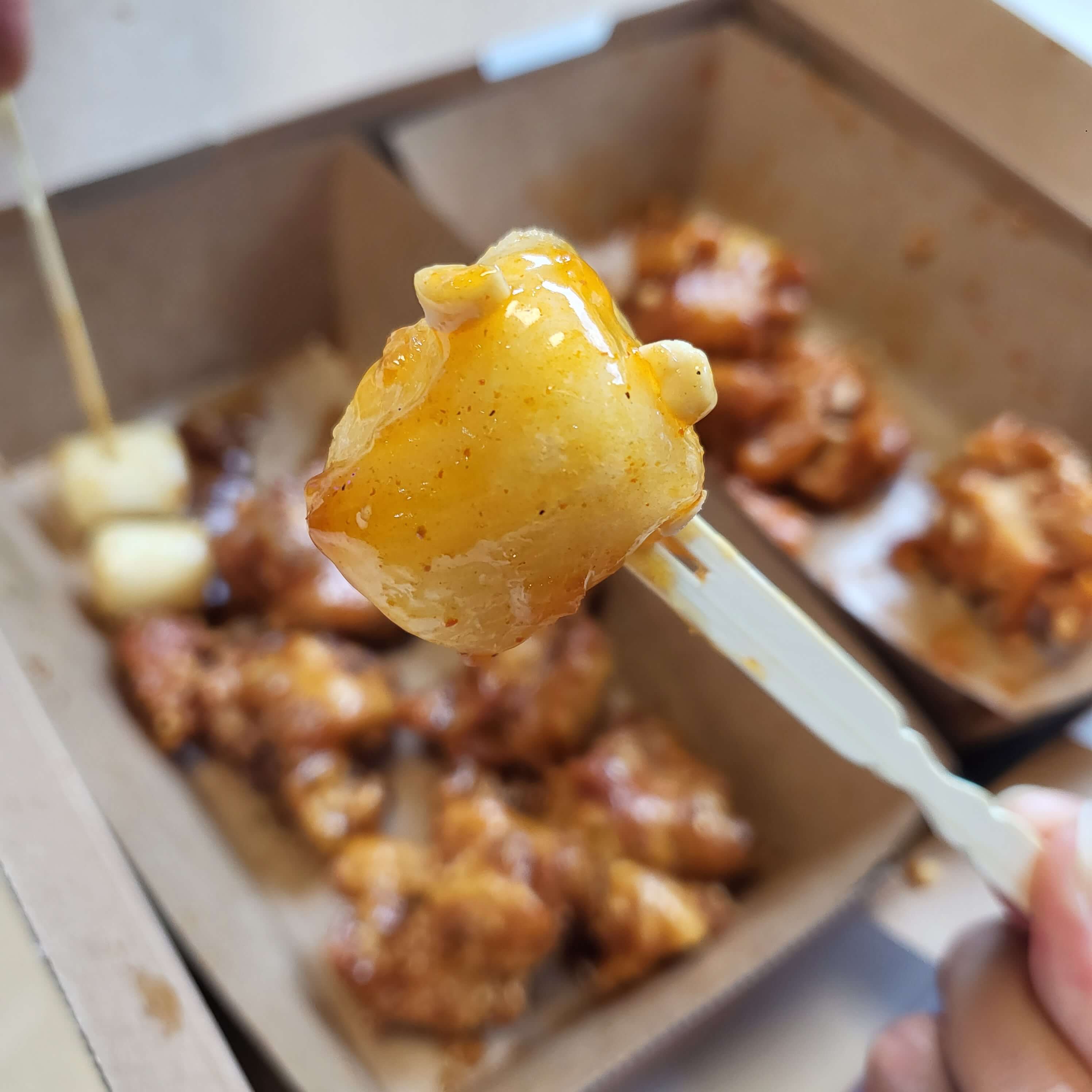 쌀가루로 튀겼다 하니 확실히 다른 닭강정과는 다른 맛이었어요!