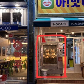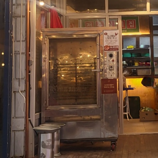 맛나스넥 앞에 있는 전기구이 통닭기계.