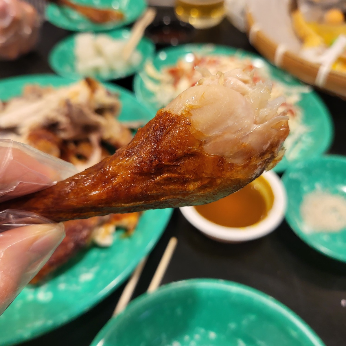 전기구이라 기름기가 쫙 빠져서 정말 담백하고 맛있었던 통닭!