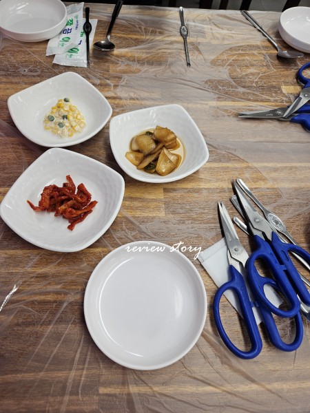 인원수대로 주문하면 간단한 밑반찬과 대게를 먹을 수 있는 도구를 줍니다.