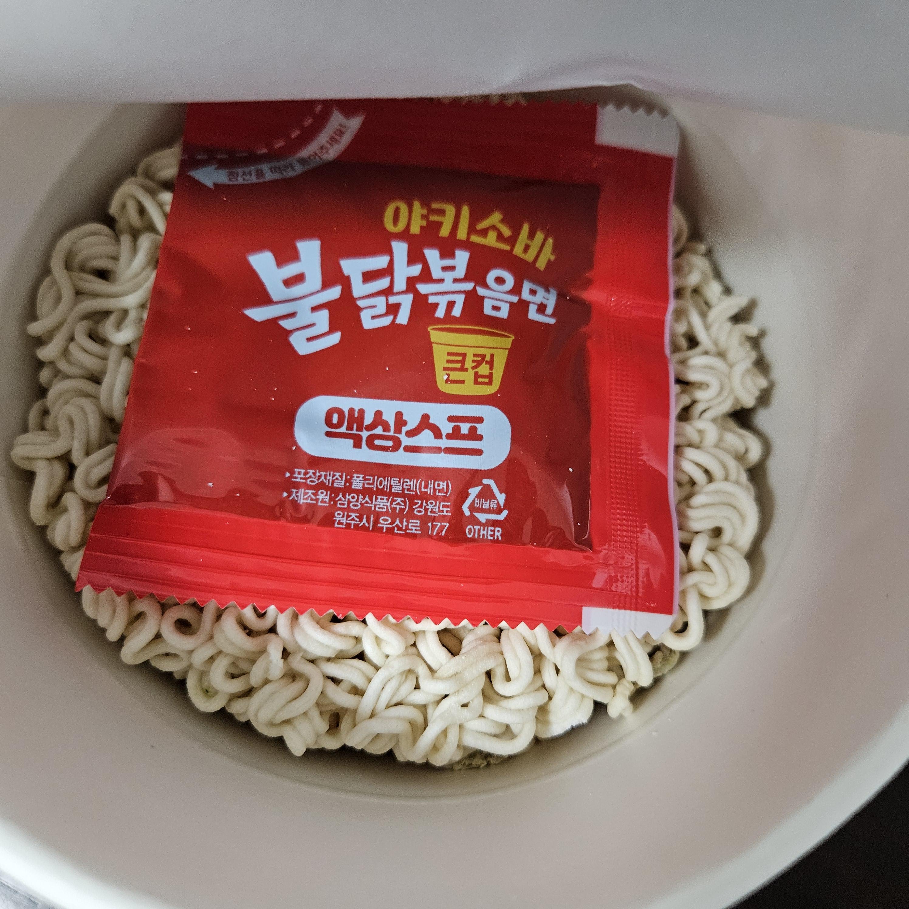 면과 액상스프만 들어있는 보통의 불닭볶음면과 같습니다.