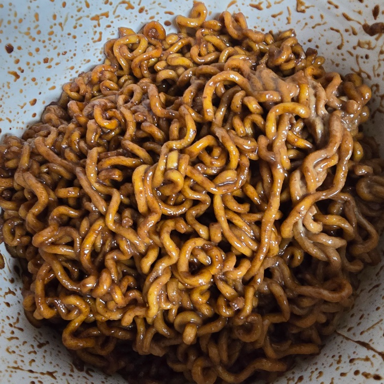 짜장볶이는 분말 스프만 넣고 비볐을 때는 짜장범벅맛과 비슷했습니다. 마요네즈를 추가하니 약간의 고소함이 가미되었지만 마요네즈 맛이 크게 느껴지지는 않기 때문에 부족하다고 느껴진다면 마요네즈를 더 추가해서 먹는 게 좋을 듯합니다.