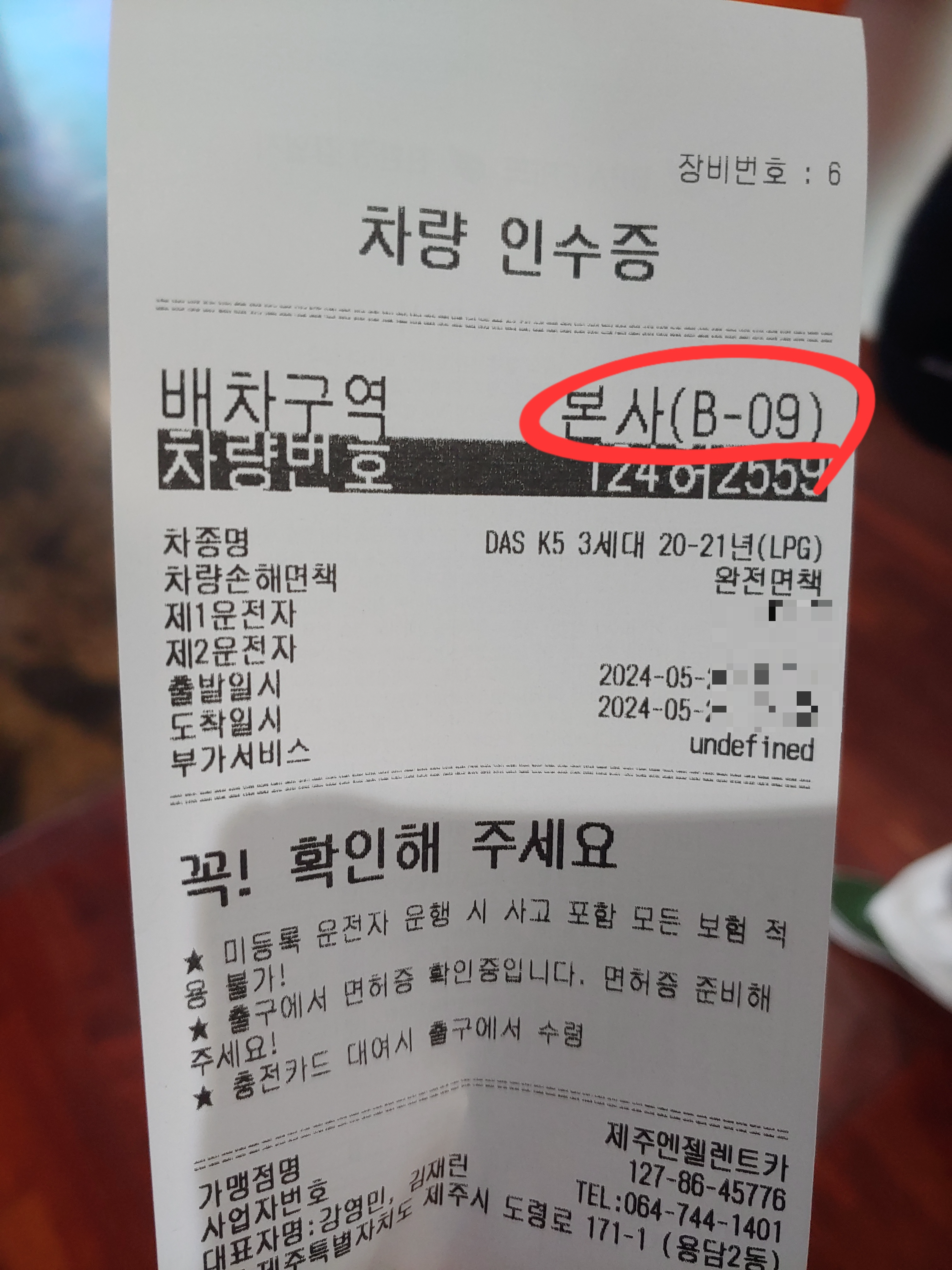 차량 인수증을 받으면 배차구역이 쓰여있는데요.