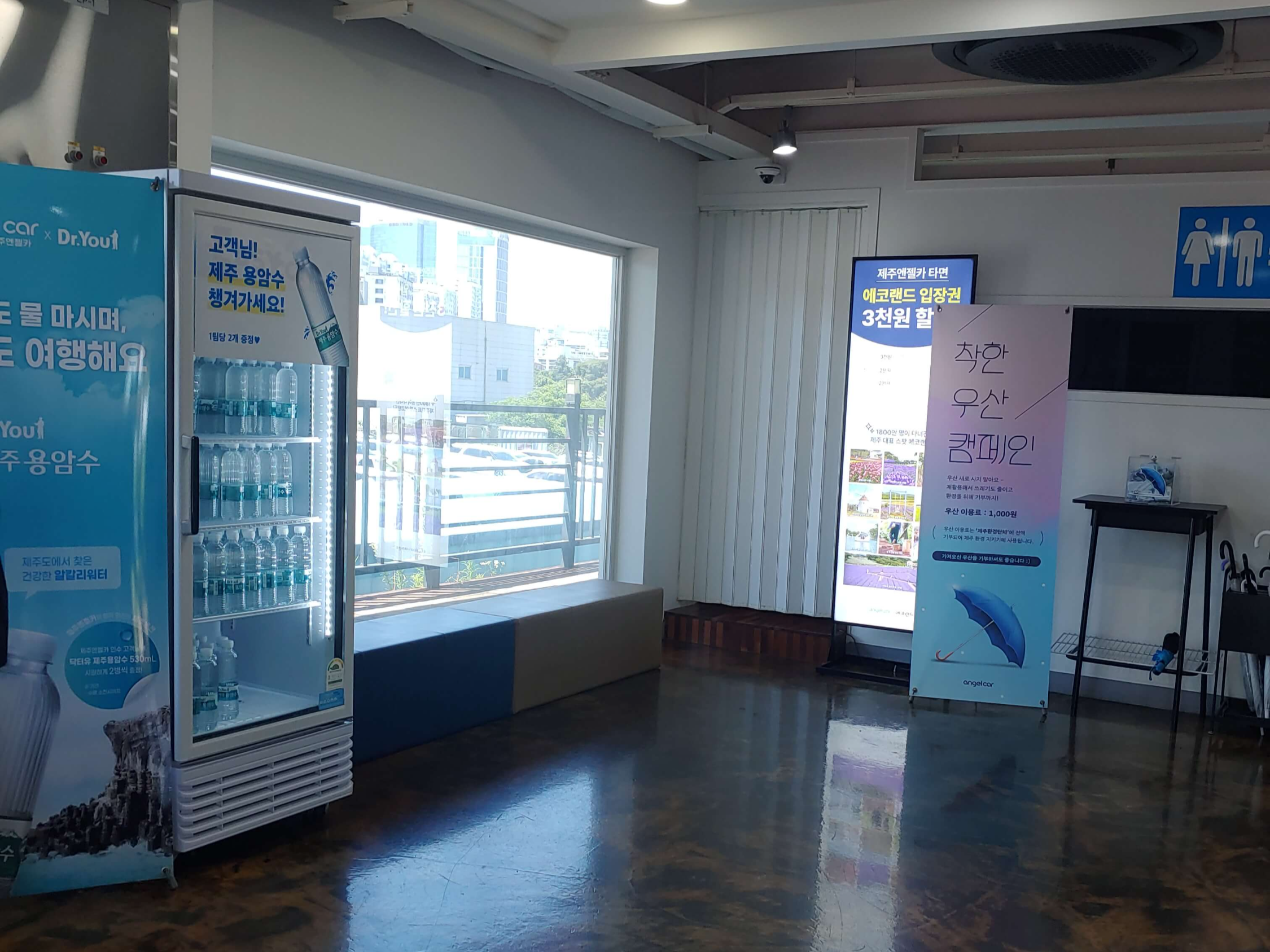 엔젤카에서는 제주 용암수도 가져갈 수 있는데요. 더운 여름철에 시원한 생수라니 센스가 돋보이는 엔젤카 입니다. 차량 인수하러 가기 전에 잊지 말고 챙겨가시길 바랍니다.