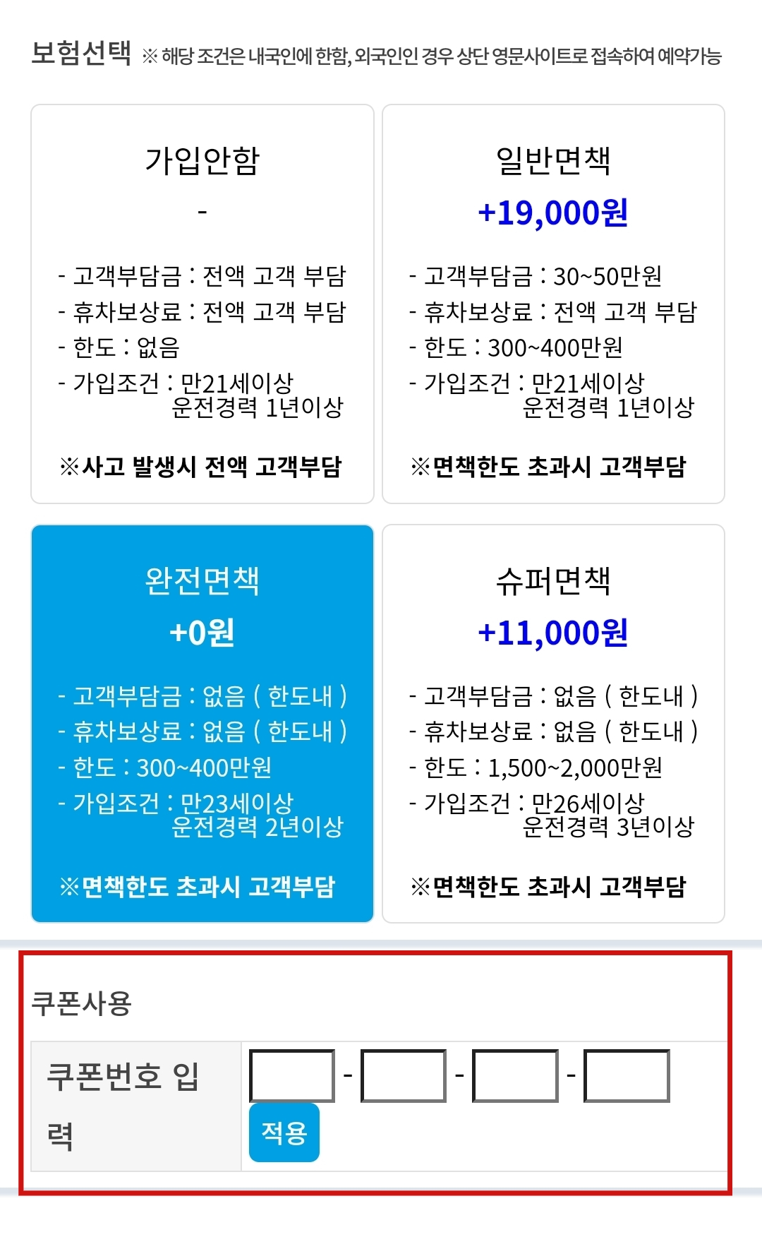 단, 예약할 때 적용차량 확인은 필수로 해야 합니다.
