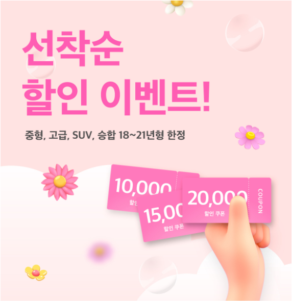 차종에 따라 1만 원에서 최대 2만 원까지의 할인쿠폰을 적용할 수 있습니다.