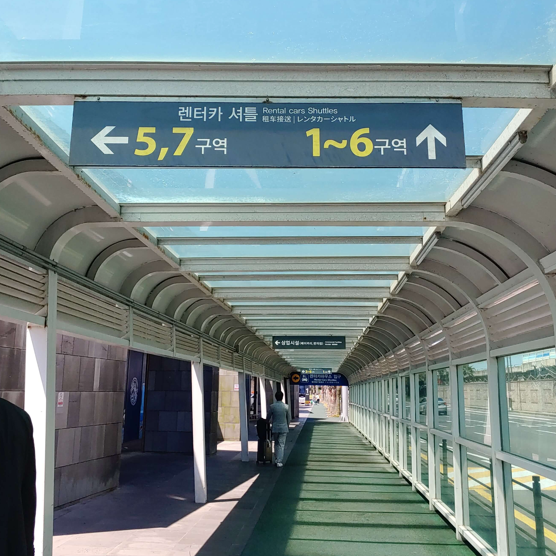 공항 5번 출구로 나와서 길을 건너면 렌터카 하우스로 가는 길이 나옵니다.