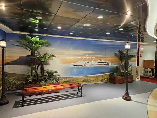 푸트코트존 쪽 문을 통해 나가면 테이블 좌석이 있는 야외 선셋 테라스가 나옵니다. 새벽 출발이라 오션뷰를 보긴 어렵지만 답답함 없이 즐기기에 좋습니다.