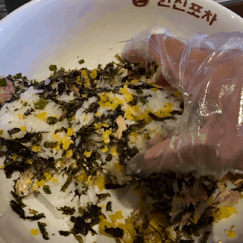 주먹밥도 빠질수 없습니다. 잘비벼서 먹기 좋게 만들어 줍니다^^