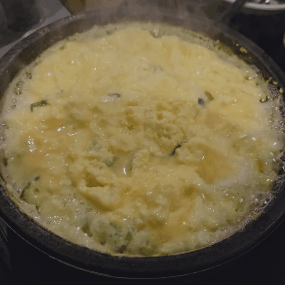 단일 메뉴로도 파는 계란찜입니다. 큰 뚝배기에 보글보글 끓여져 나옵니다.