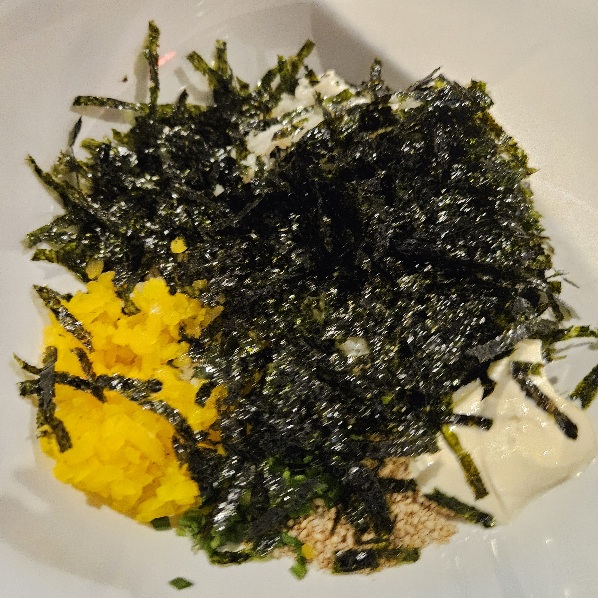 세트메뉴인 주먹밥과 함께 먹으면 더 고소하고 풍부한 맛을 느낄 수 있습니다.