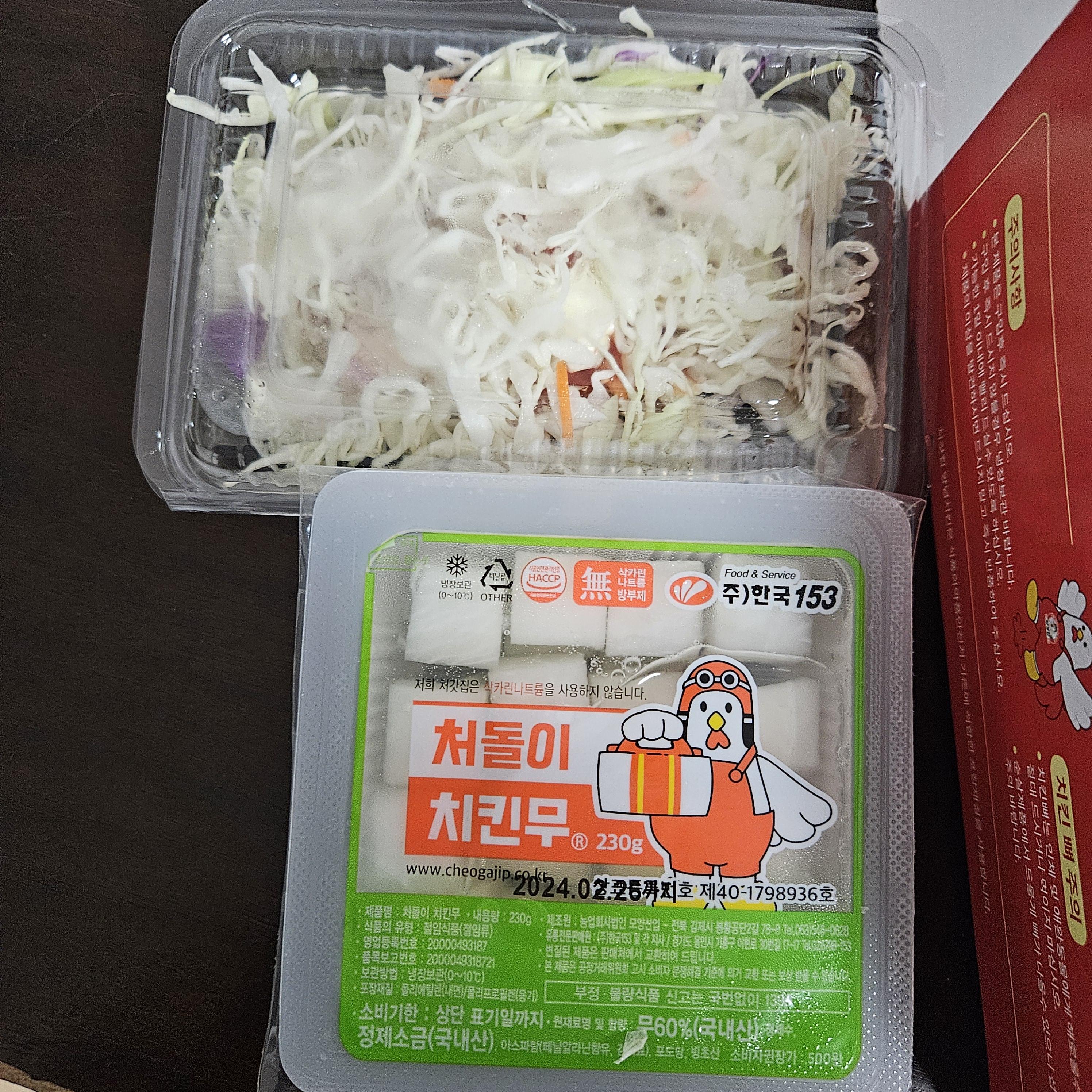 양배추 샐러드와 치킨무가 함께 있습니다.