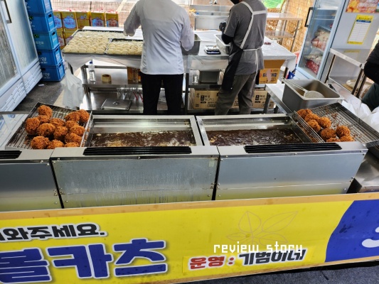한 바퀴 돌아보고 하나씩 먹고 싶은 것을 골라 보았습니다. 먼저 인삼볼카츠입니다.