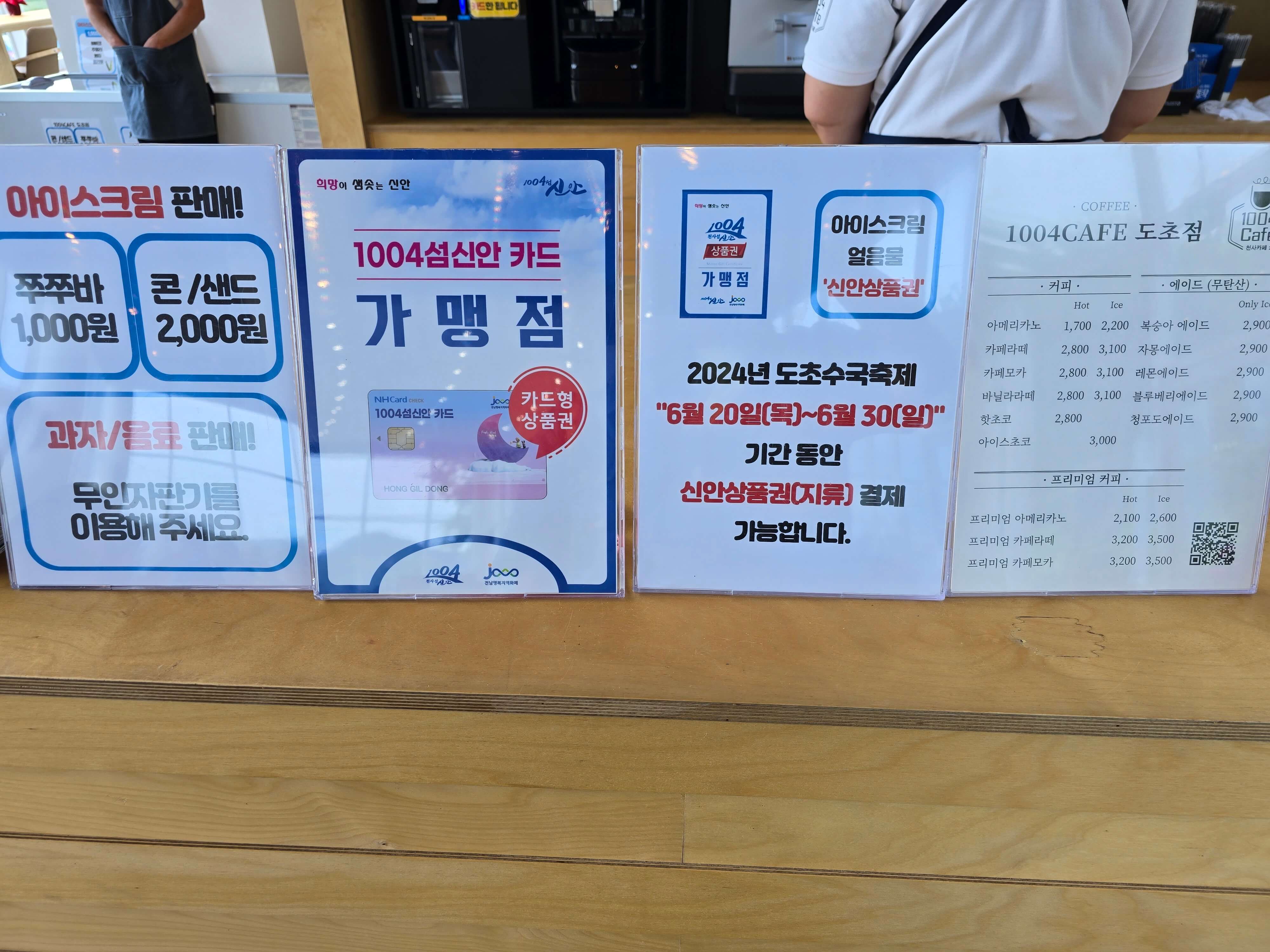 신안상품권 결제는 아이스크림과 얼음물만 가능합니다. 직원에게 계산해 주세요.
