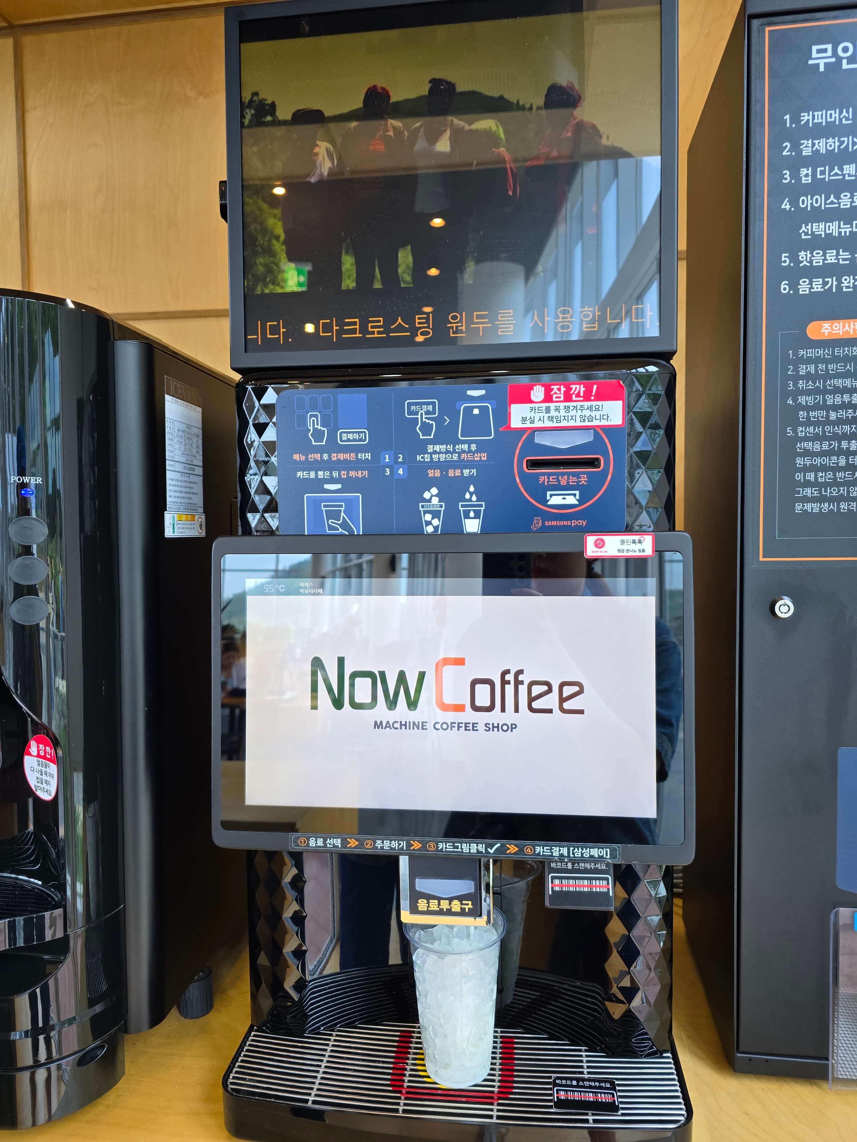 메뉴선택 ➡️결제➡️컵 빼기➡️얼음 받기➡️음료 받기로 진행하면 됩니다.