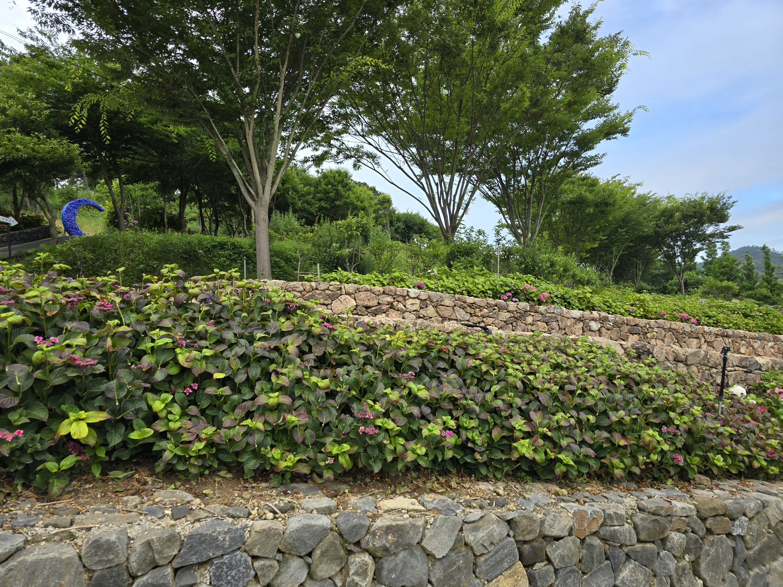 수국공원 글자와 하트 포토존이 있는 곳 앞에도 아직 덜 핀 수국들을 볼 수 있습니다.