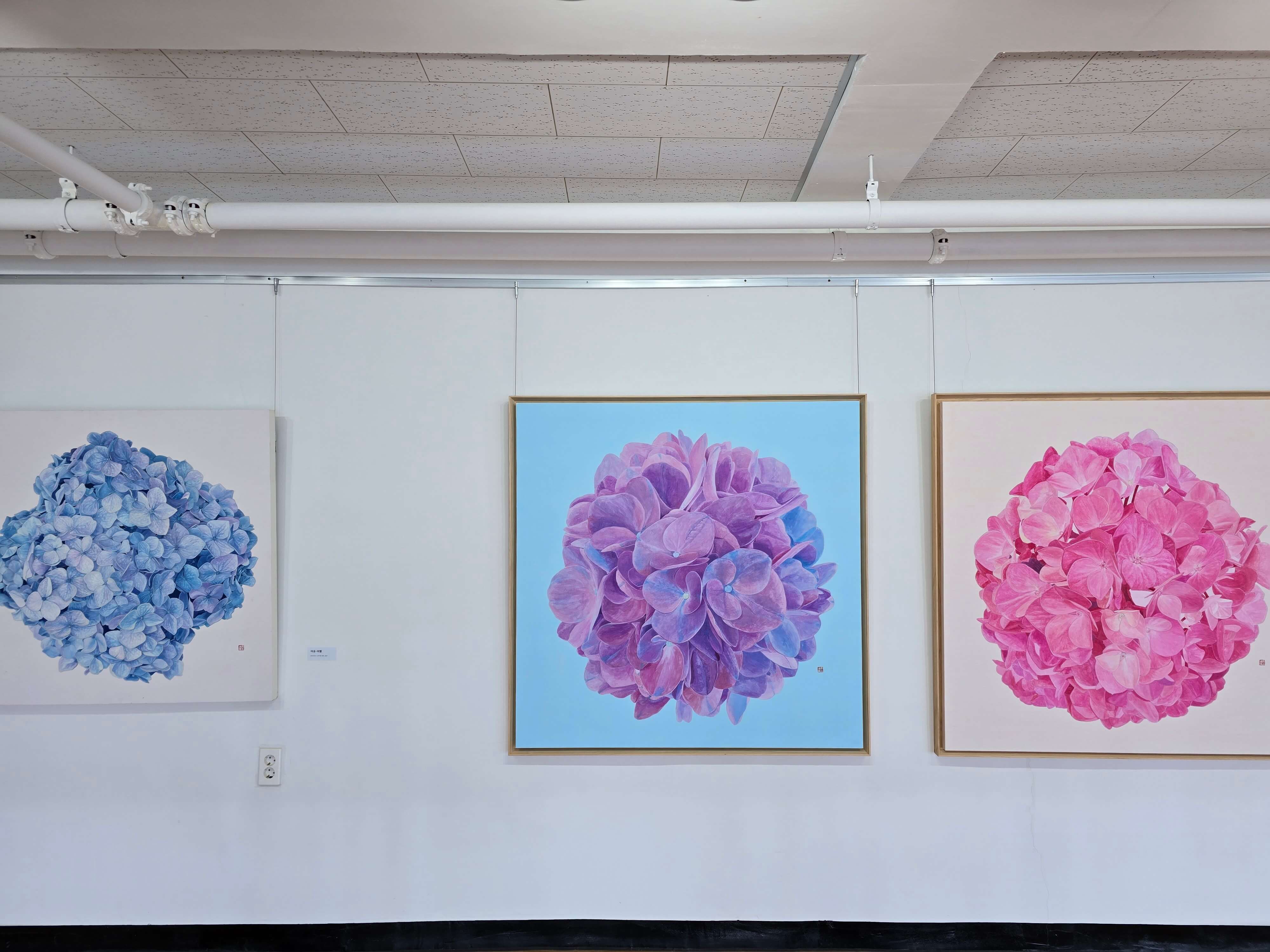 전시실안에는 수국주제 한국채색화 20점이 전시되어 있습니다. 예술로 수국의 아름다움을 전달하기 위해 마련되었다고 합니다. 그림으로 보는 수국은 또 다른 느낌입니다. 꼭 잊지 말고 방문해 보세요.