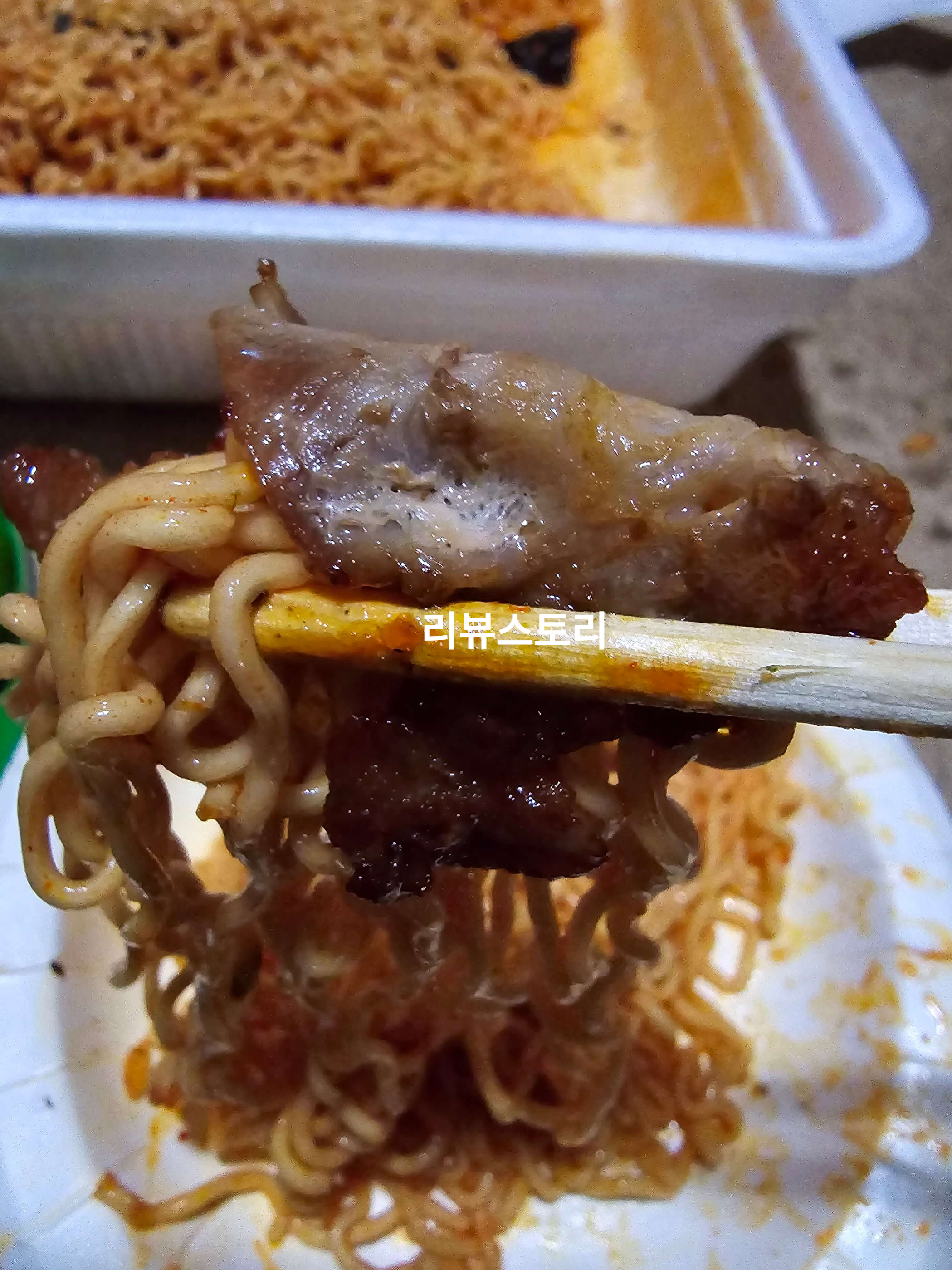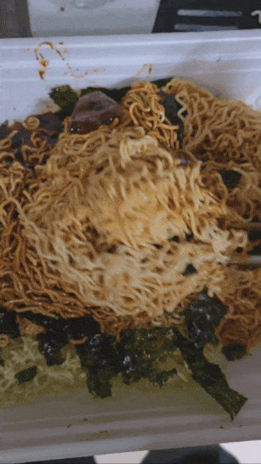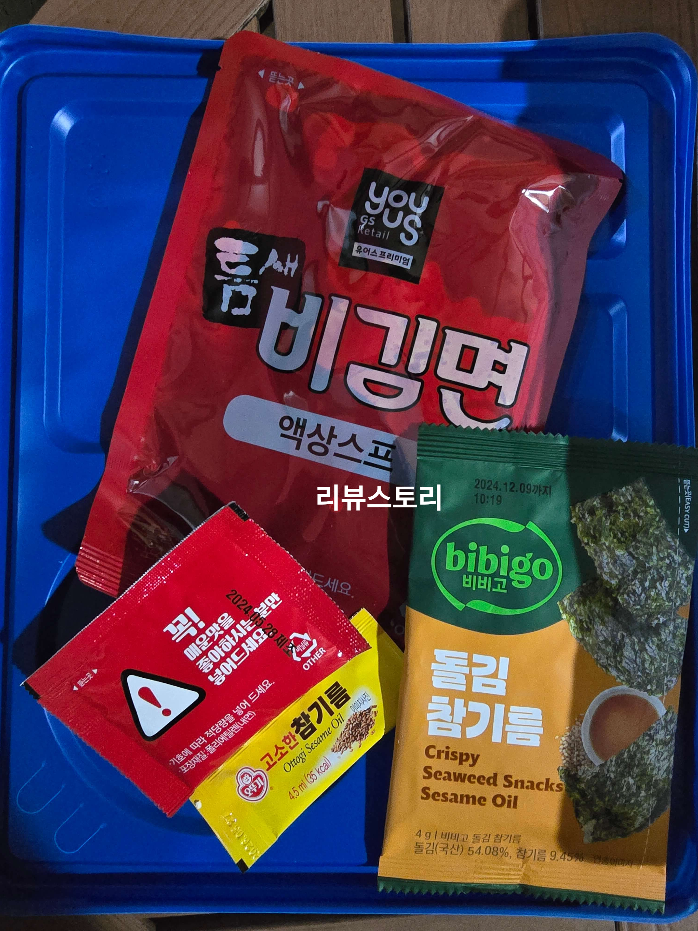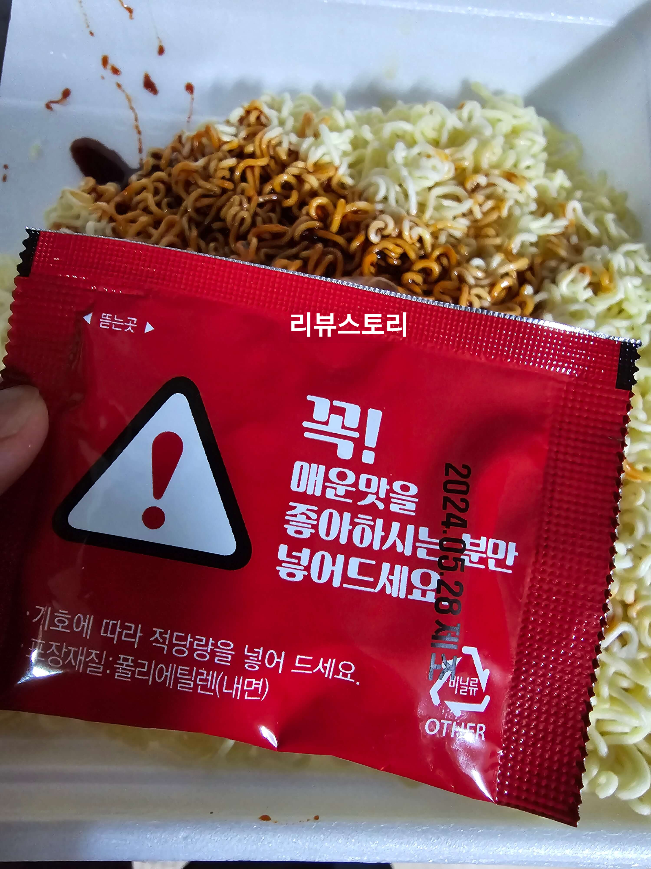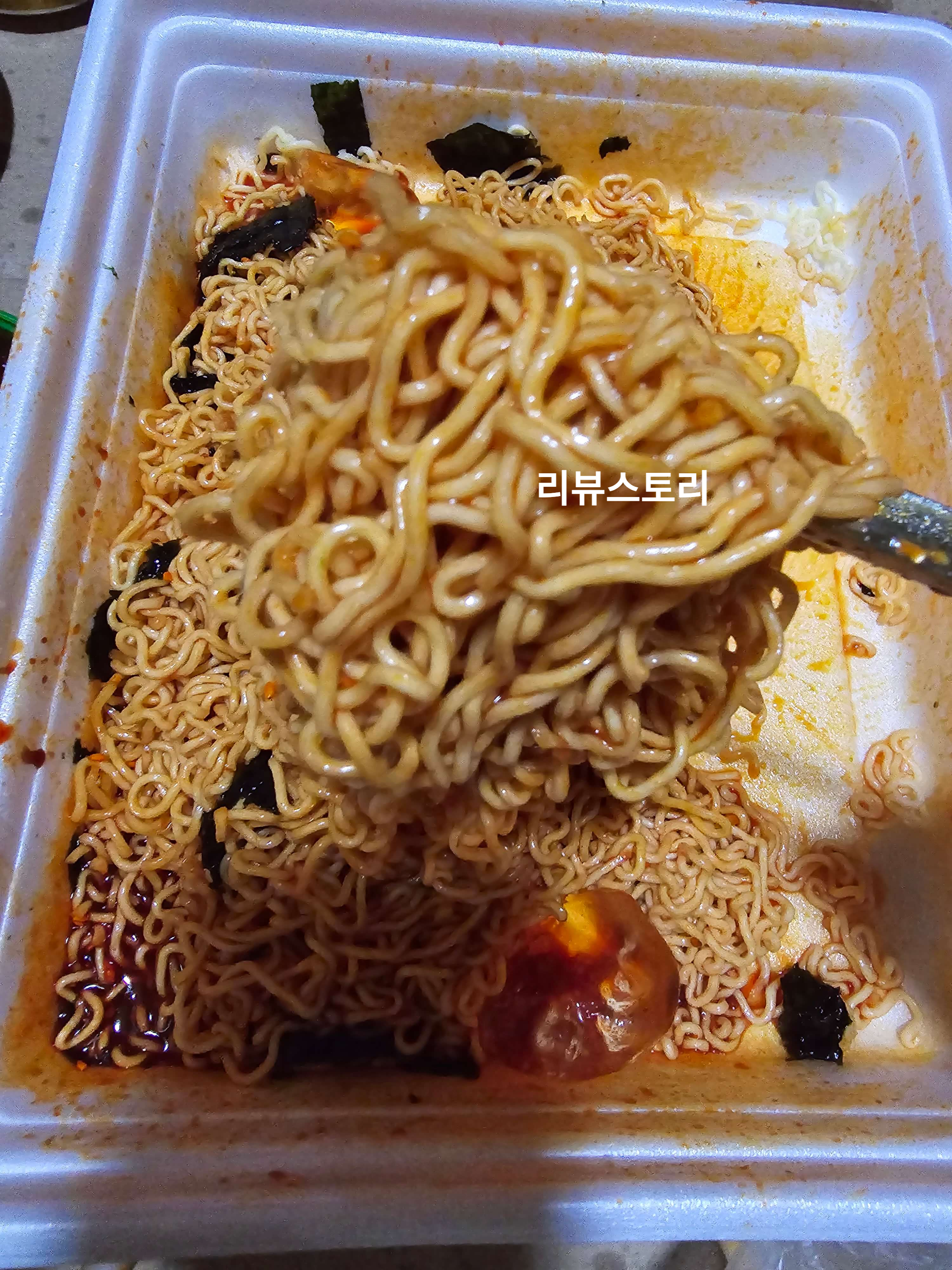 4. 비김면 액상스프를 넣고 잘 섞습니다. 기호에 따라 김, 별첨스프, 참기름을 넣어 드세요.